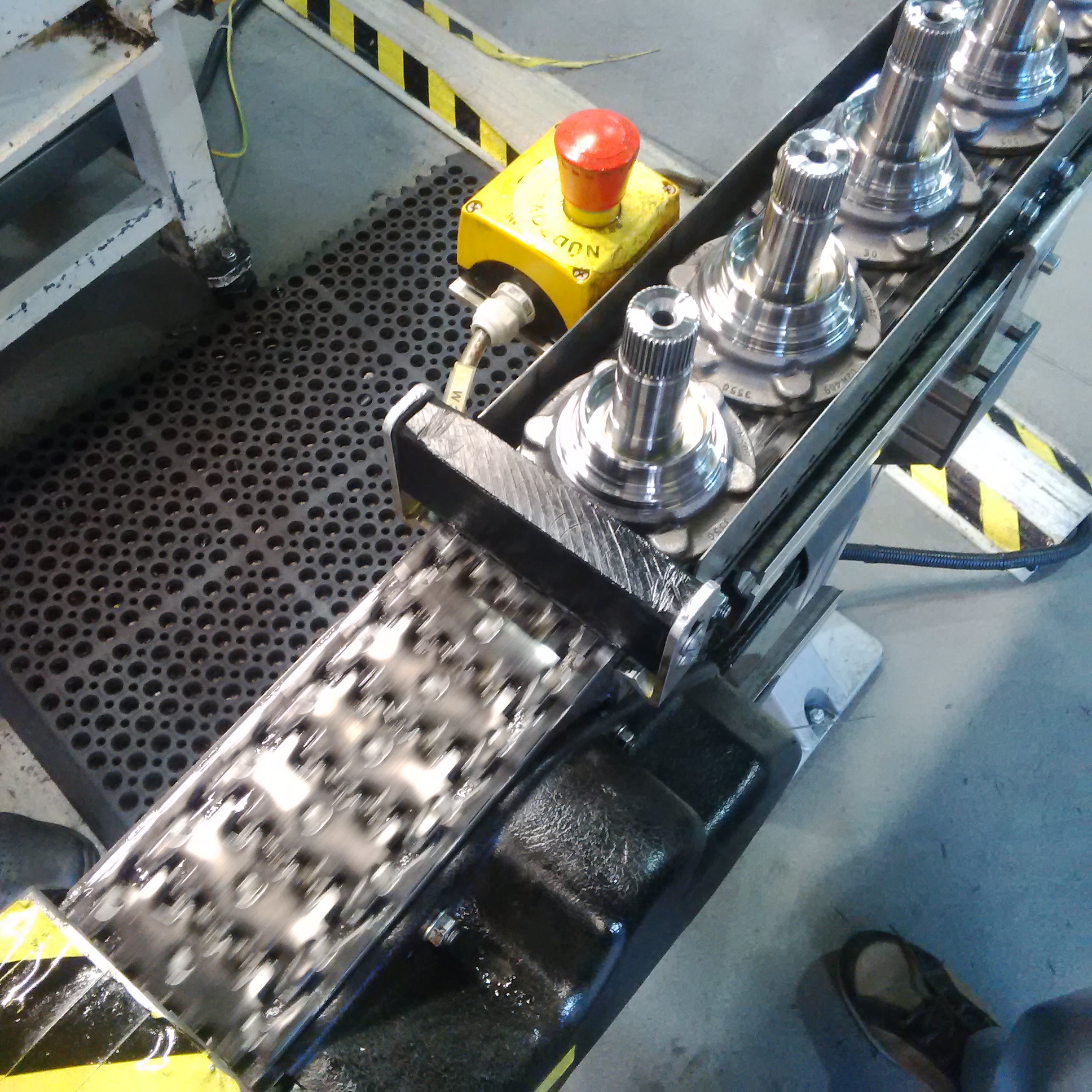 Problém: Zákazník sa v rámci zefektívňovania výroby rozhodol, že medzi dva obrábacie stroje umiestni robotickú ruku, ktorá bude prekladať súčiastky z dopravníka jedného stroja na dopravník druhého stroja. Pri prekladaní je však potrebné, aby robotická ruka pootočila súčiastku o určitý uhol tak, aby súčiastka zapasovala do prípravku na druhom dopravníku. Na prvom dopravníku po obrábaní býva totiž súčiastka rôzne otočená. Preto zákazník potreboval meracie zariadenie, ktoré spoľahlivo odmeria uhol, o ktorý treba súčiastku pootočiť a ktoré pošle údaj do riadiaceho systému robotickej ruky.